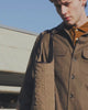 Men’s over-fit shirt jacket made from stretch virgin wool in an exclusive shade of brown, left unwashed to preserve the natural hand of the fabric. The garment features a classic pointed lapel collar, front fastening with five horizontal buttons and two rounded chest pockets with flaps, paired with side welt walking pockets for a balance of functionality and style. The cuffs are rounded off with a central pleat, while the back construction is enhanced by a topstitched yoke and two pleats to improve fit. A garment with a relaxed yet refined design perfect for a casual but polished look. Perfectly paired with the pants in the same fabric for a complete Tintoria Mattei look.