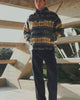 Maglione comfort fit realizzato in lana e lana d'alpaca blu tinto filo, con lavorazione a costa inglese che aggiunge struttura e profondità al tessuto. La finezza 7 garantisce un equilibrio ideale tra peso e traspirabilità, rendendolo perfetto da indossare da solo o sotto capispalla più leggeri. La perfetta vestibilità è garantita dalla maglia a coste applicata a polsi e fondo.
